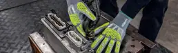 For example, the new HexArmor Helix 3013IMP model with its flexible polyurethane coating on the palm of the hand is well suited for sensitive work in the automotive industry, in mechanical and plant engineering and, thanks to the cut protection level F, also in metal processing. Meanwhile, the HexArmor Helix 3014IMP is characterized by the even more robust SandyGrip NBR coating, which is ideal for mining, oil and gas industry or even in road construction and civil engineering thanks to its good oil grip. What both new additions to the product range of impact protection gloves have in common is the high wearing comfort thanks to the ultra-thin, extremely cut-resistant mixed knitted fabric.