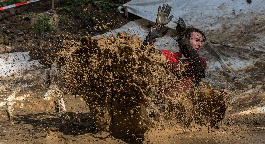 Kurzerhand motivierte das Quartett insgesamt 15 Arbeitskollegen zum Mitmachen – teilweise wenig geübte Läufer, aber als Team, wollten sie alle das Ziel erreichen. Um aber überhaupt eine Ziellinie zu Gesicht zu bekommen, galt es, einige Hindernisse zu überwinden: im Fluss waten, im Kaltwasserbecken tauchen, über eine schlammige Motocross-Strecke watscheln, über Reifenberge klettern und auch ein paar schöne Trails laufen. Insgesamt lagen vor der Mannschaft zwei Runden zu je sieben Kilometern – und die boten nach einer Woche intensiven Regens quasi perfekte Wettkampfbedingungen.