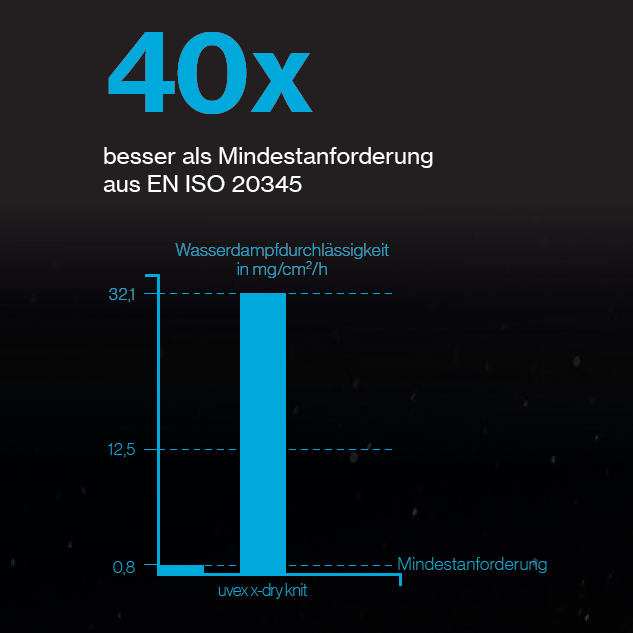 40x bessere Wasserdampfdurchlässigkeit als die Mindestanforderung aus EN ISO 20345