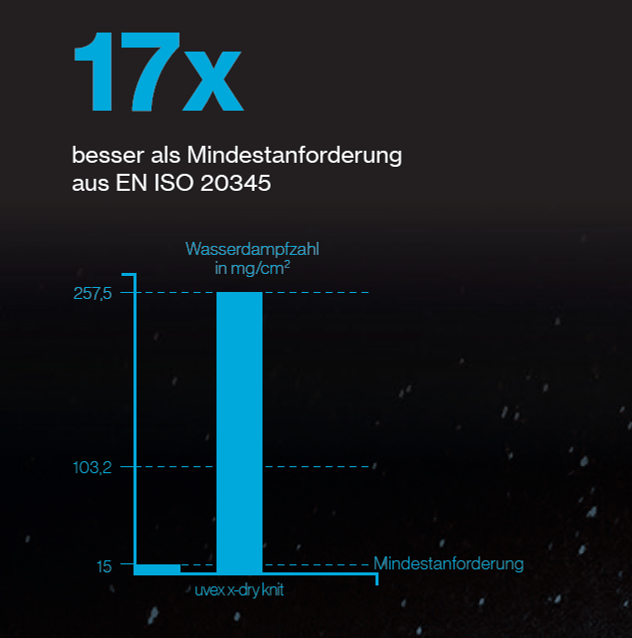 17x bessere Wasserdampfzahl als die Mindestanforderung aus EN ISO 20345
