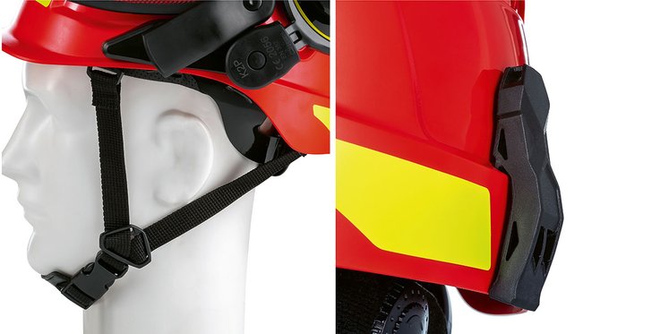 Der Kinnriemen sorgt für einen perfekten Halt des Systems auf dem Kopf auch bei schwierigen Arbeiten über Kopf. Bei Bedarf kann er blitzschnell demontiert und wieder montiert werden.