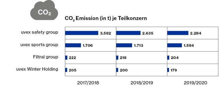 CO2-Emissionen der uvex safety group (in Tonnen)