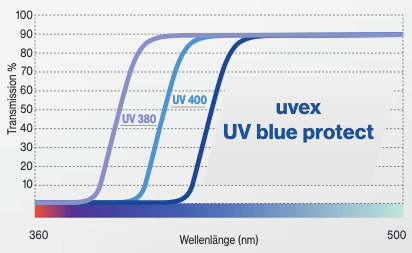 The WHO recommends UV protection up to 400 nm. For uvex, this has always been a given.