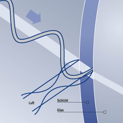 Anti-reflective coating is a layer applied to the inside and outside of lenses using vapour deposition. It significantly reduces reflections on the surfaces. It offers a cosmetic advantage and increases light transmission.
