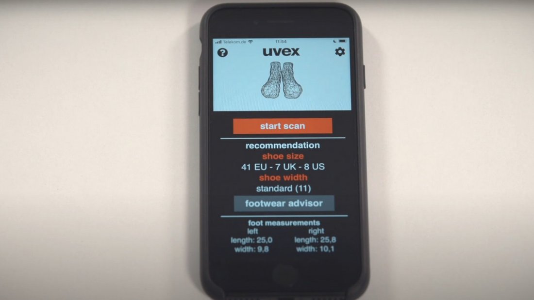 It's common knowledge that people take a different shoe size in different brands. The matching shoe can vary even by several sizes. Since wearing the right size is crucial when it comes to how well safety shoes protect your feet, we recommend that you use the uvex fit advisor app to determine your personal uvex shoe size.