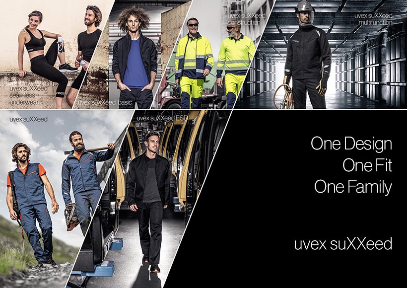 uvex suXXeed impressed the German Design Awards' international jury in 2019 with its multifunctionality, carefully considered 3D cut and design. This innovative work clothing range is a stylish eyecatcher which offers a seamless crossover between professional clothing and outdoor fashion, making the collection suitable for both work and leisure. Building on the uvex suXXeed design, the collection has now been expanded to include construction, ESD, multifunction and seamless underwear.