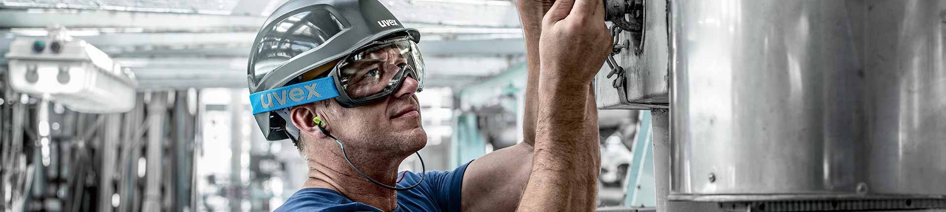 The uvex megasonic's field of vision has been extended downwards to provide the wearer with maximum safety when walking, thereby eliminating the need to take the goggles on and off when walking on difficult surfaces. The uvex megasonic is particularly suitable for the oil and gas industries, chemical and pharmaceutical industries, fire service, construction industry, metalworking, agriculture and forestry, food industry, waste management and the iron and steel industries.
