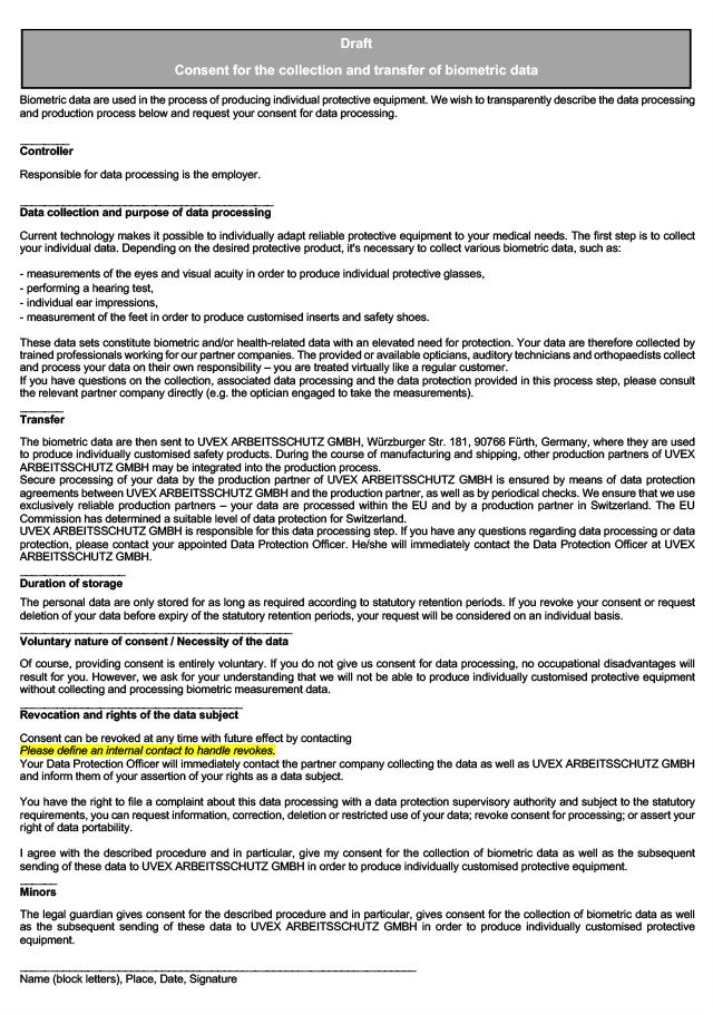 Please find enclosed the basic draft we have provided for use as a potential declaration of consent for your employees. This serves exclusively to transparently describe the data processing processes that occur during the course of producing individualised protective products.