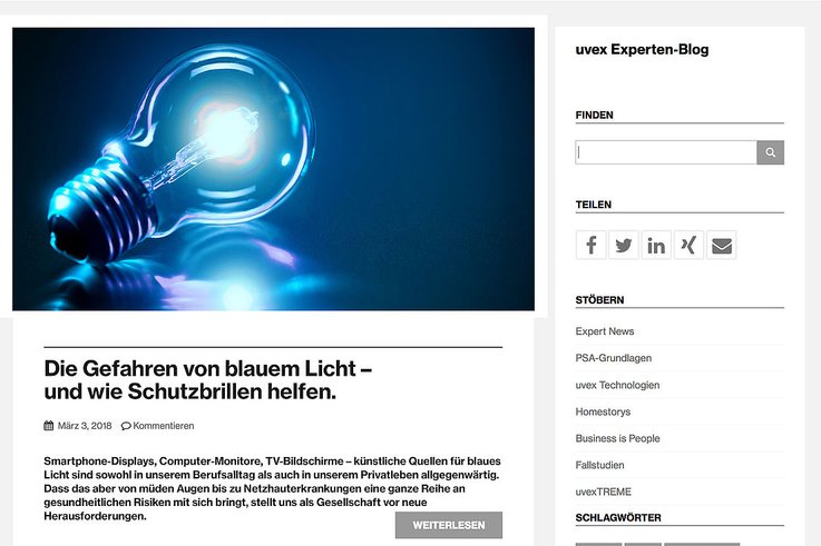 The uvex brand has always been synonymous with optimum protection against UV radiation: Our company name consists of "UV" and "ex" — UltraViolet Exclusion. For many years now, we have been providing advanced eyewear technology such as UV400 as standard.